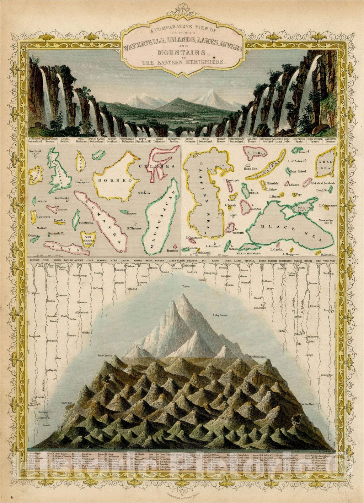 Historic Map : A Comparative View of the Principal Waterfalls, Islands, Lakes, Rivers, and Mountains in the Eastern Hemisphere, 1851, John Tallis, v5, Vintage Wall Art