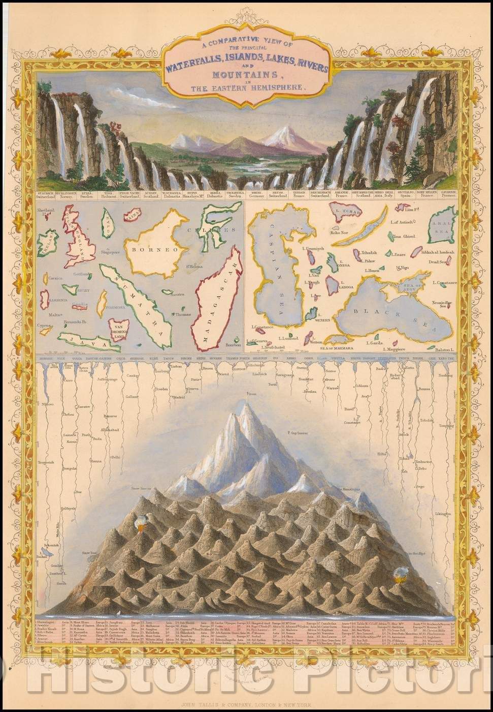 Historic Map - A Comparative View of the Principal Waterfalls, Islands, Lakes, Rivers, and Mountains in the Eastern Hemisphere, 1851, John Tallis - Vintage Wall Art