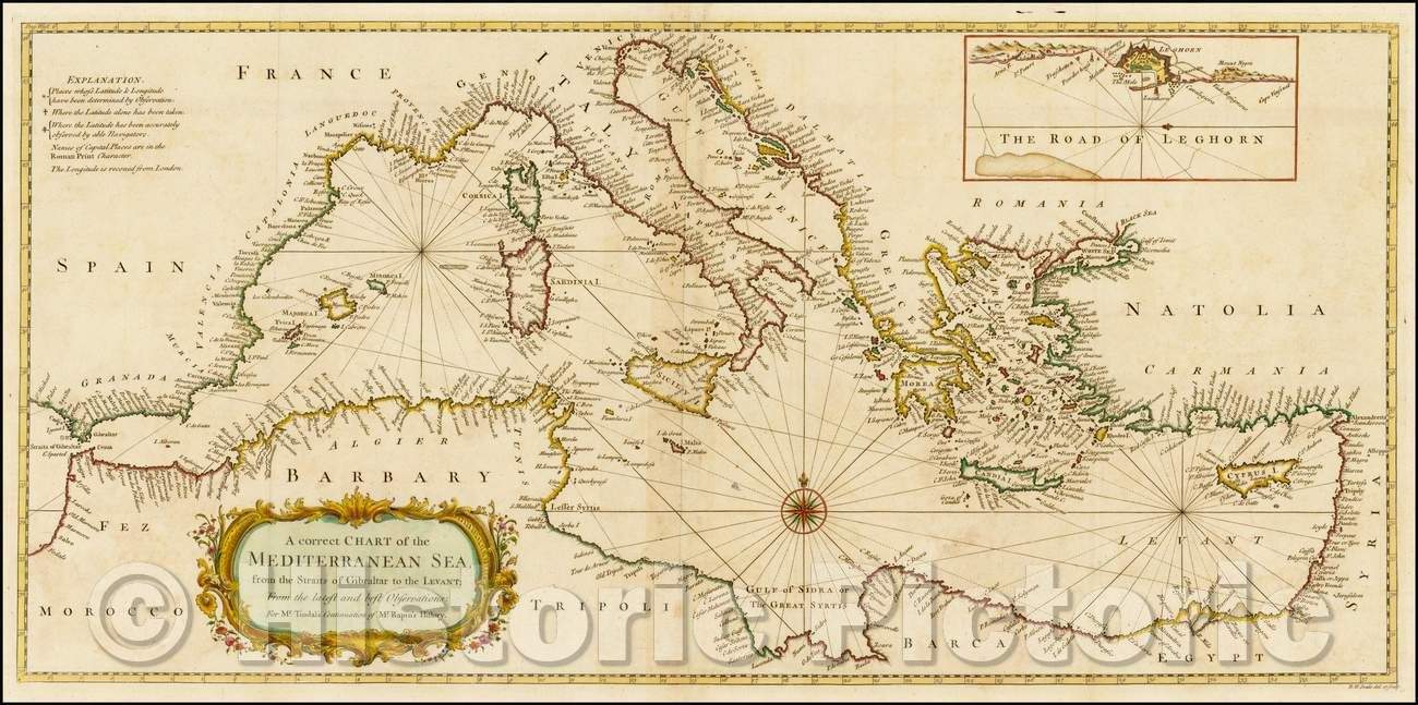 Historic Map - A correct Chart of the Mediterranean Sea, from the Straits of Gibraltar to the Levant; From the latest and best Observations, 1746 v2