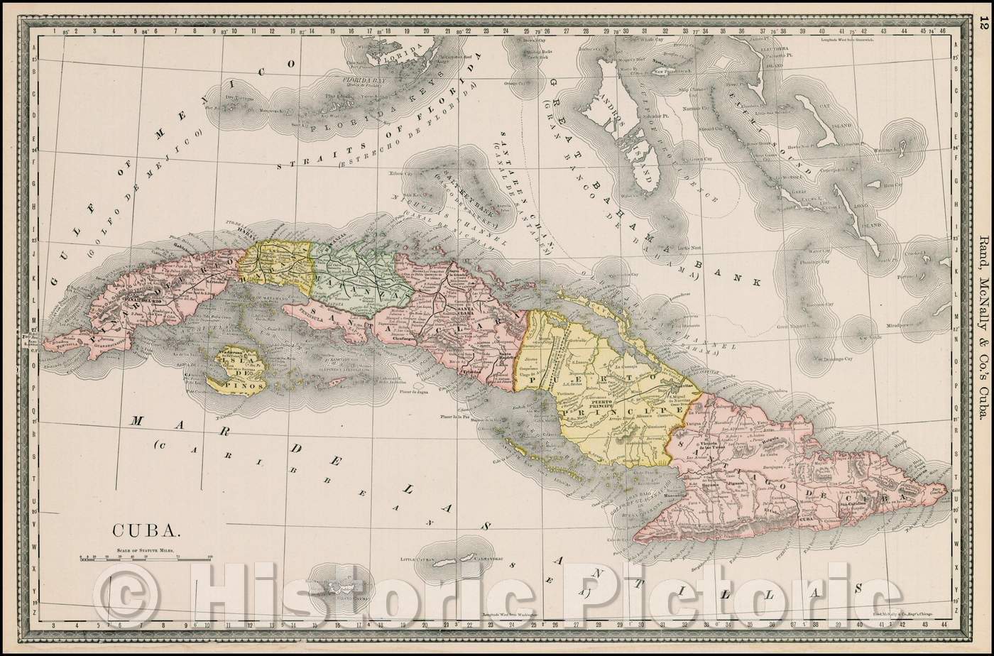• .Historic Map - Cuba (with the Cayman Islands, part of the Bahamas and the Florida Keys), 1883, Rand McNally & Company v1