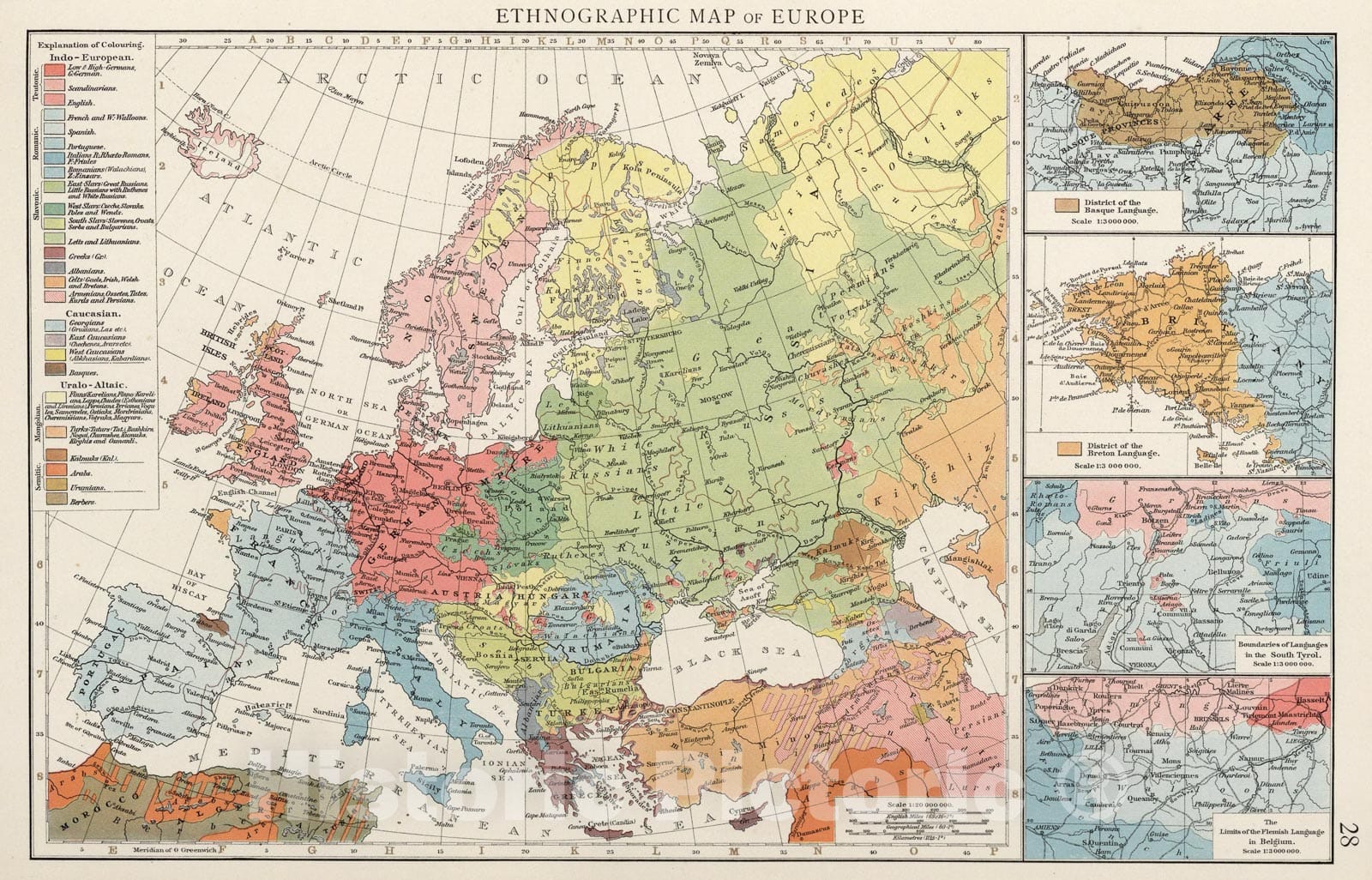 Historic Map : Ethnographic map of Europe, 1900, Vintage Wall Art