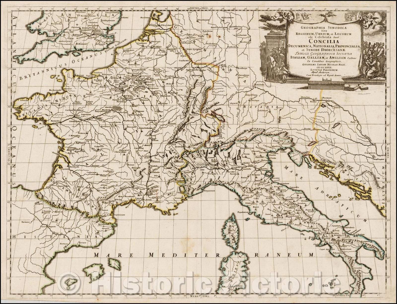 • .Historic Map - Geographia Synodica Sive Regionum, Urbium et Locurum ubi Celebrata Sunt :: part of Western Europe, Church Synods throughout the Region, 1660 - Vintage Wall Art