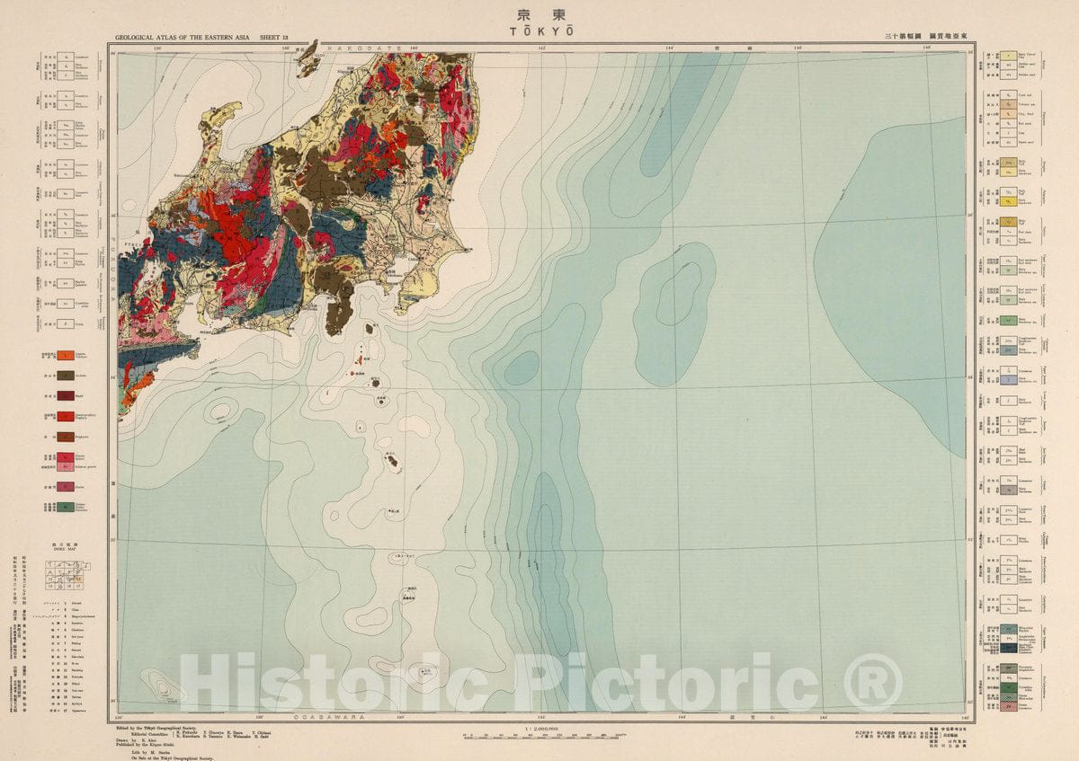 Historic Map : Geological Atlas of Eastern Asia. Sheet 13. Tokyo, 1929 Geologic Atlas - Vintage Wall Art