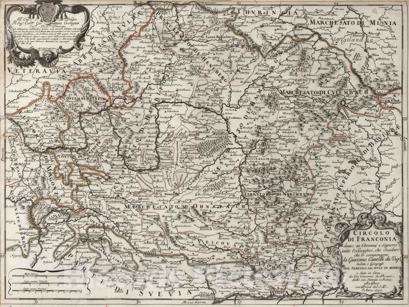 Historic Map : Germany, , Europe 1690 Circolo Di Franconia , Vintage Wall Art
