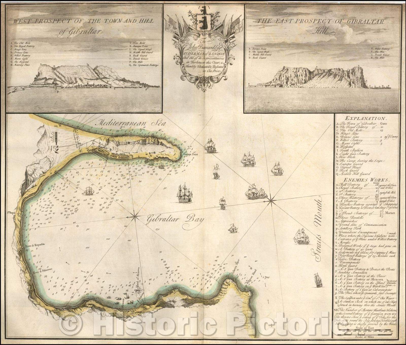 Historic Map - Gibraltar with 2 Views, 1730, Charles Price - Vintage Wall Art