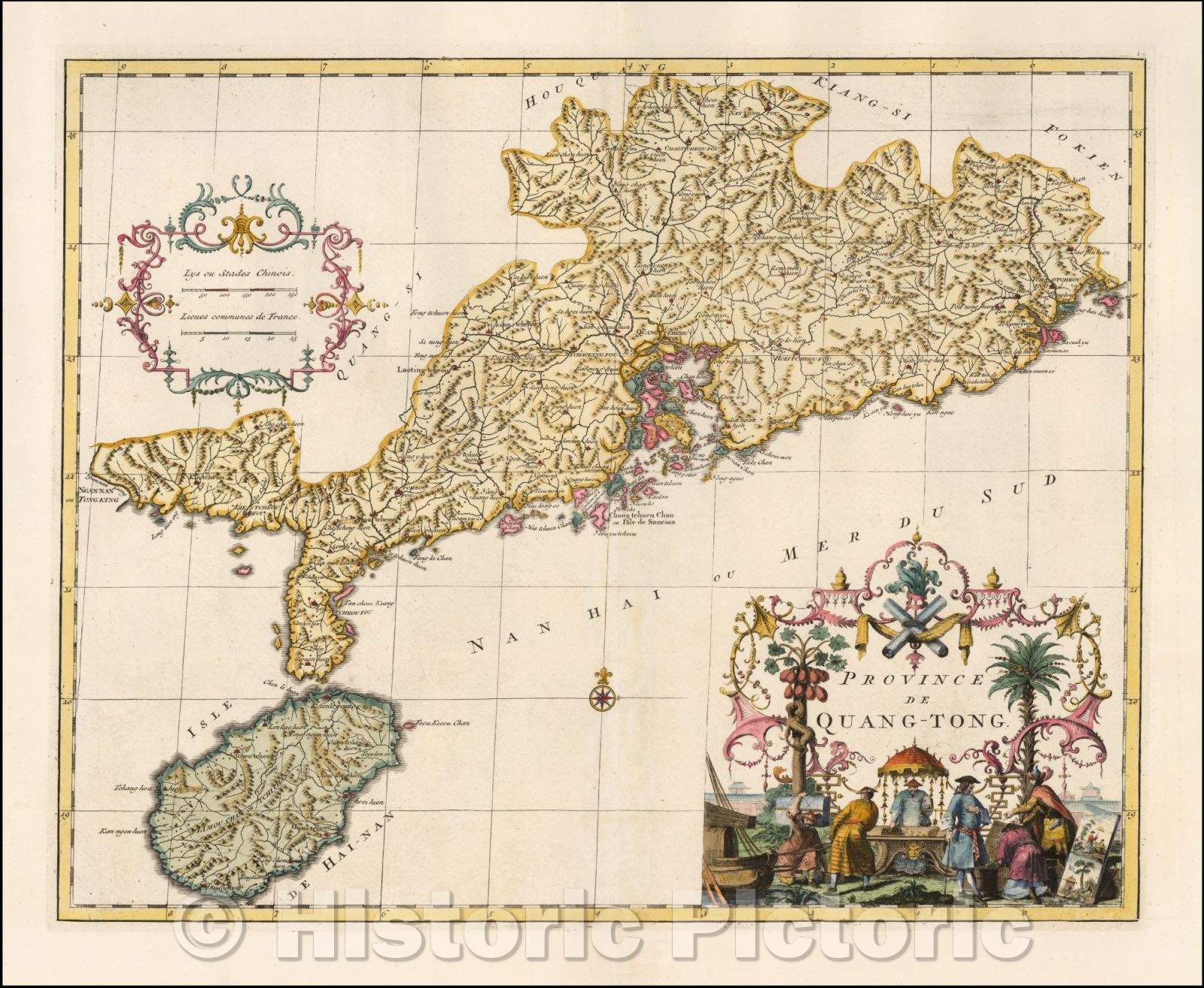 Historic Map - Guandong and Hainan, China Province De Quang-Tong, 1737, Jean-Baptiste Bourguignon d'Anville v1