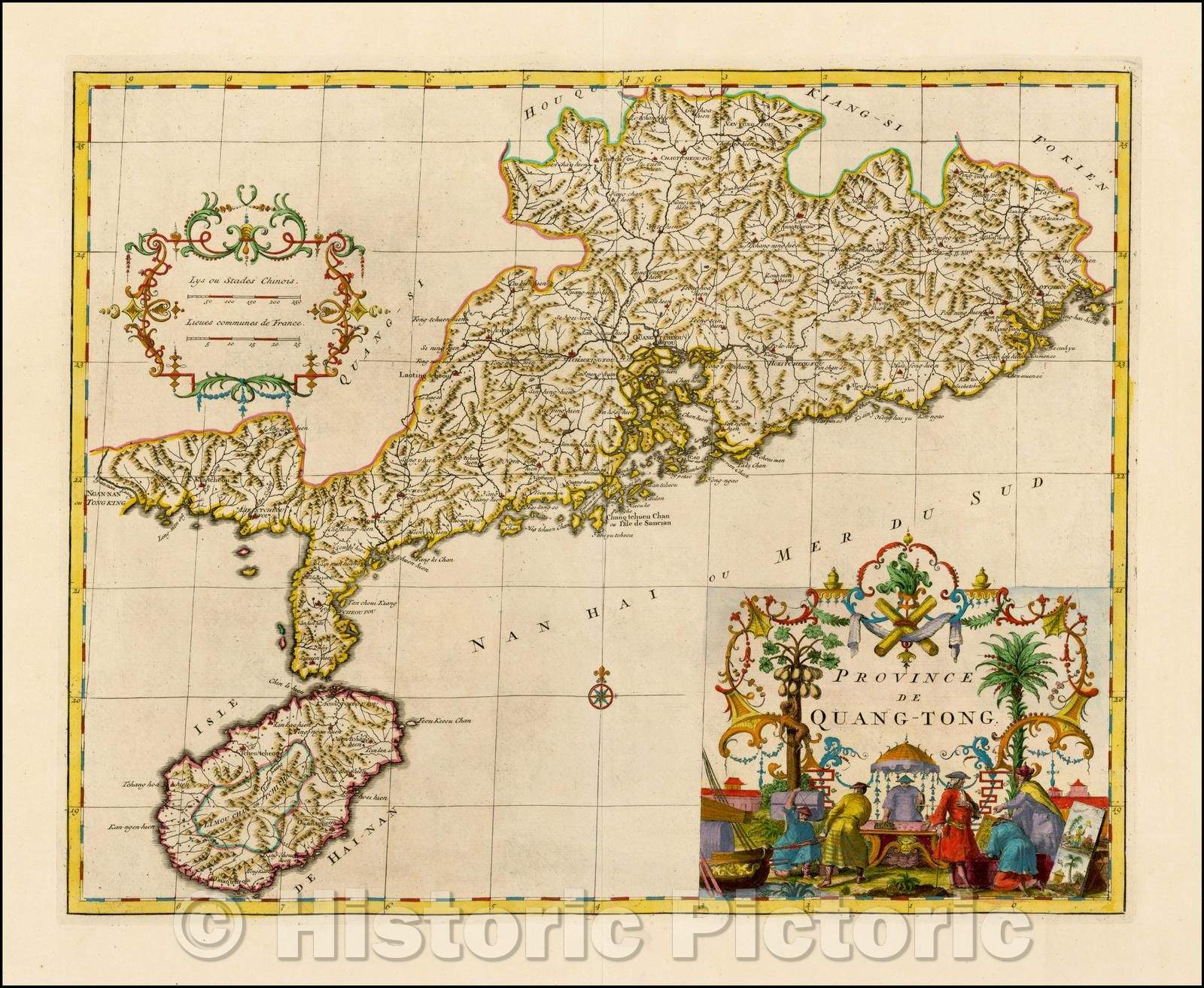 Historic Map - Guandong and Hainan, China Province De Quang-Tong, 1737, Jean-Baptiste Bourguignon d'Anville - Vintage Wall Art