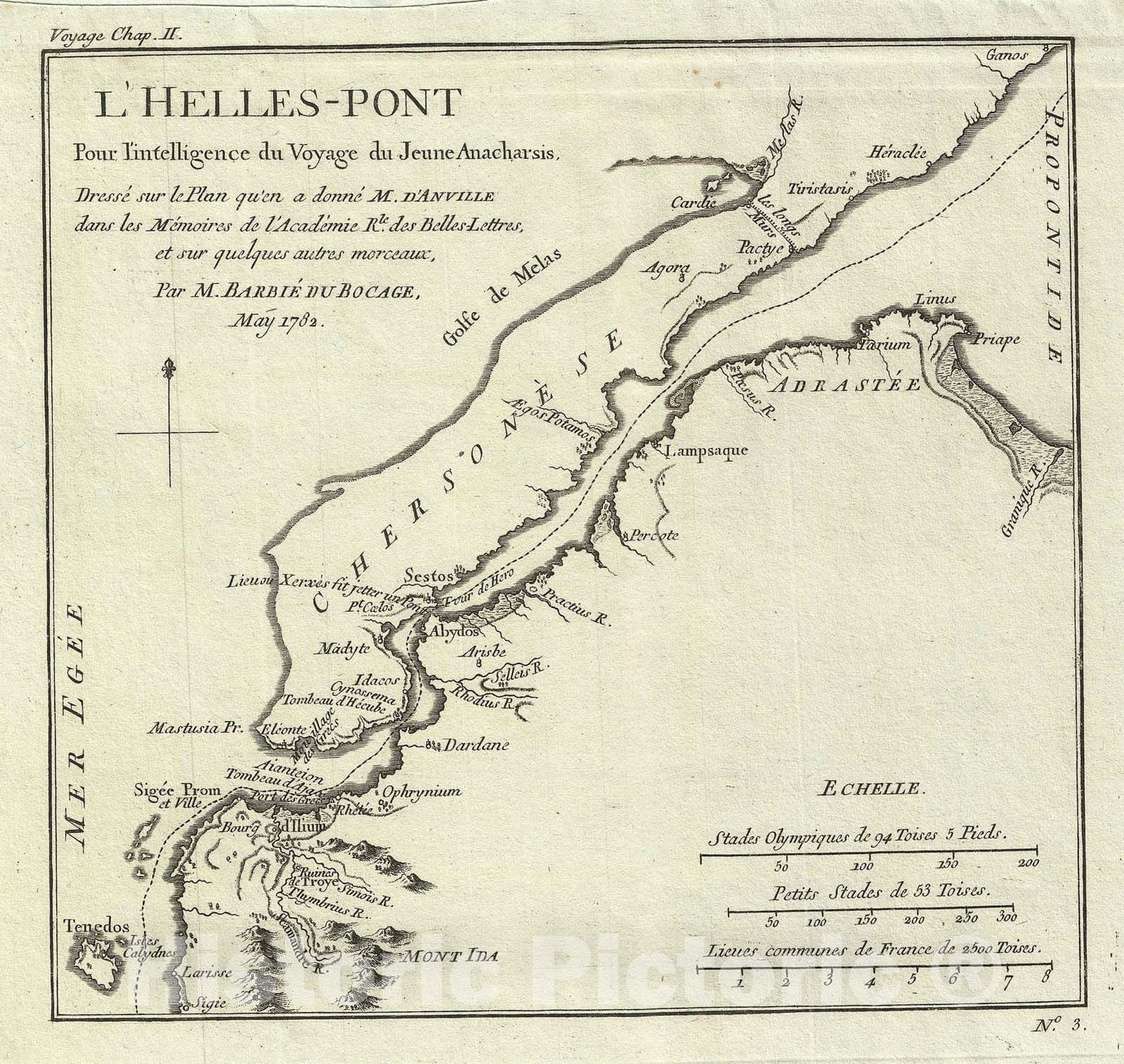 Historic Map : Hellespont, Ancient Greece, Bocage, 1782, Vintage Wall Art
