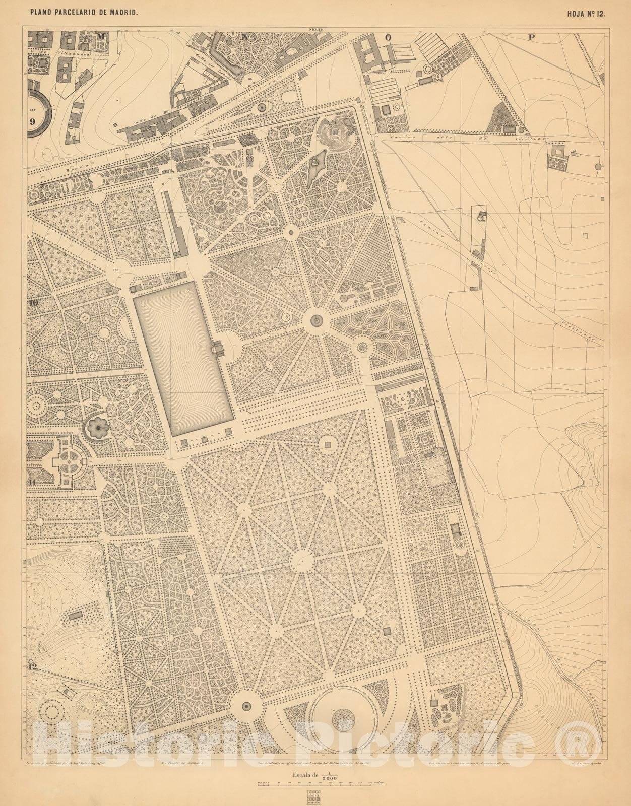 Historic Map : Hoja No. 12. Plano parcelario de Madrid, 1874, Vintage Wall Decor