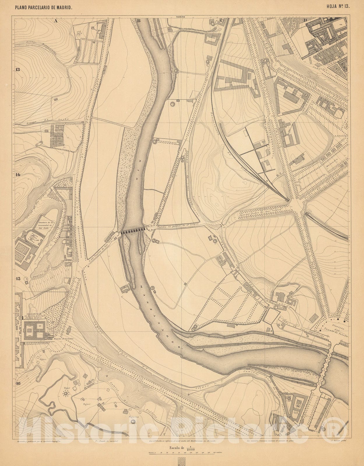 Historic Map : Hoja No. 13. Plano parcelario de Madrid, 1874, Vintage Wall Decor