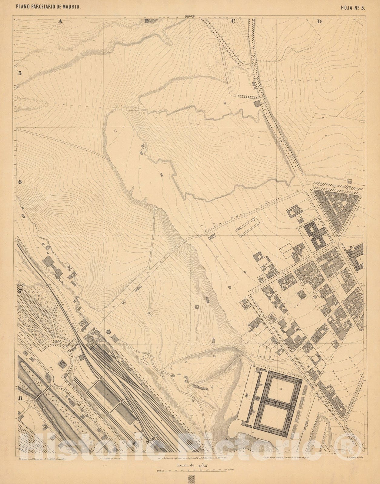 Historic Map : Hoja No. 5. Plano parcelario de Madrid, 1874, Vintage Wall Decor