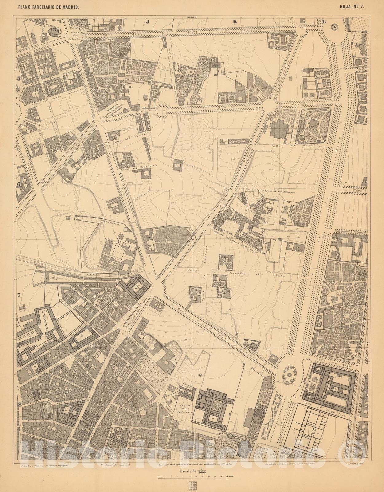 Historic Map : Hoja No. 7. Plano parcelario de Madrid, 1874, Vintage Wall Decor