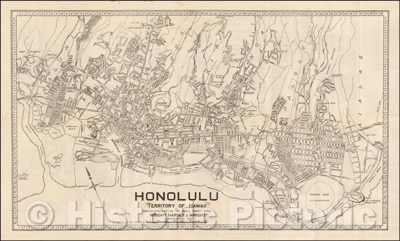 Historic Map - Honolulu. Territory of Hawaii, 1932, Hawaii Tourist Bureau - Vintage Wall Art