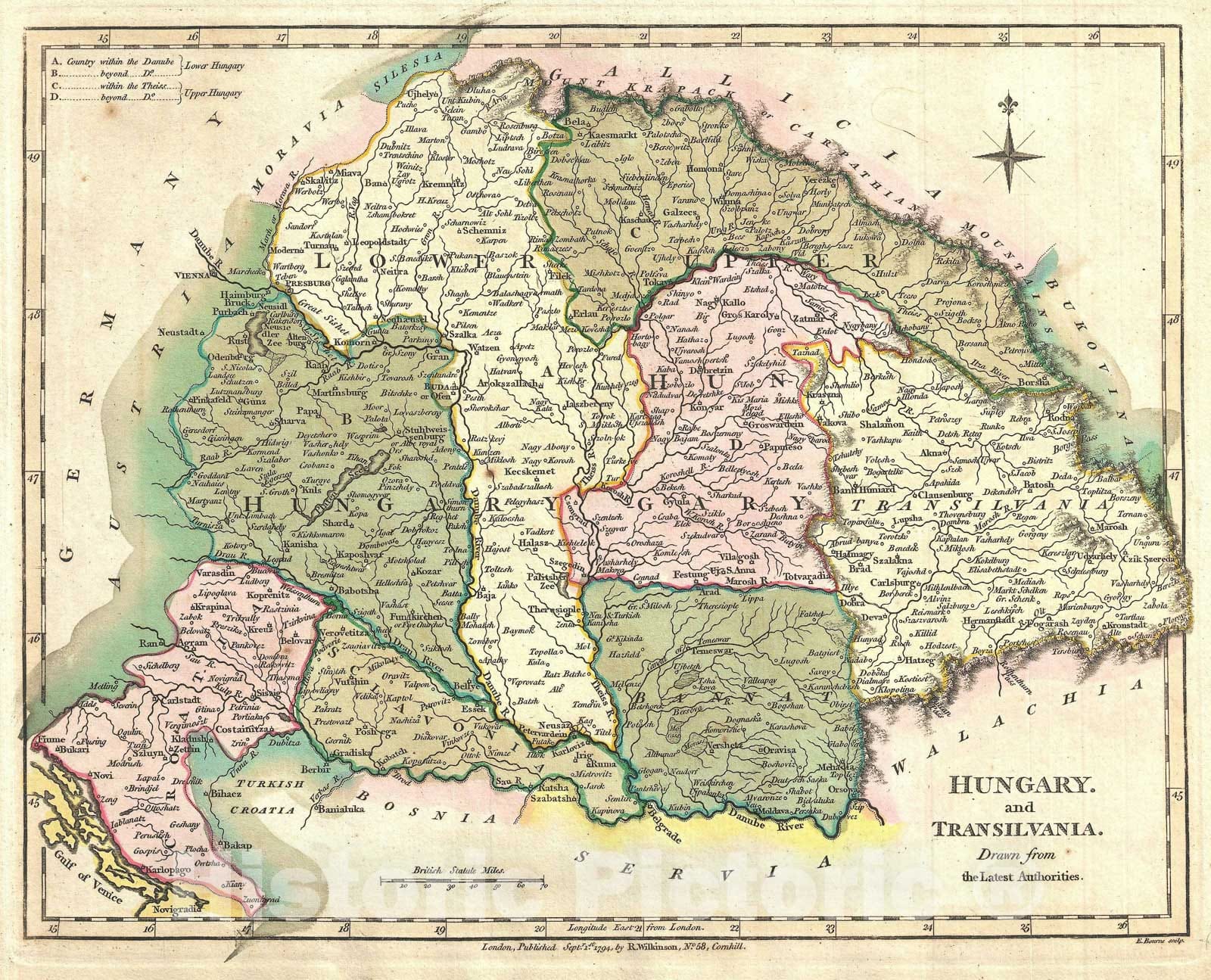 Historic Map : Hungary and Transylvania, Wilkinson, 1794, Vintage Wall Art