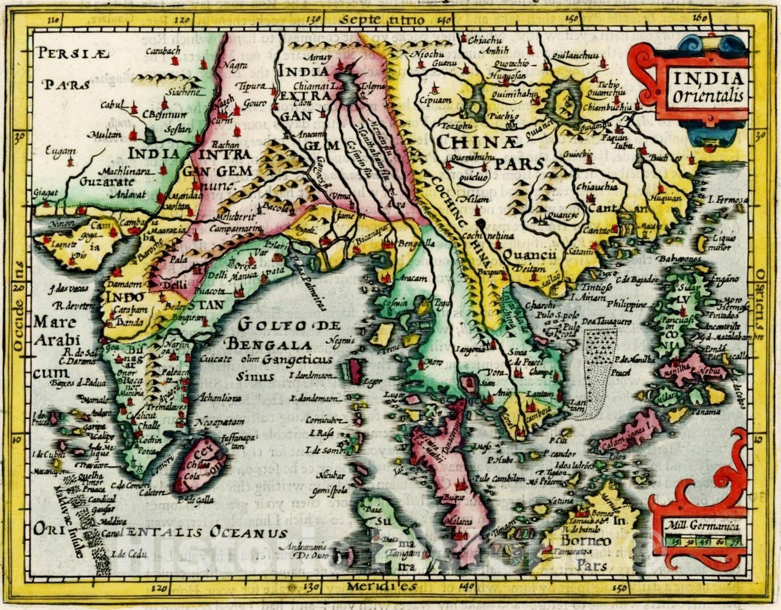 Historic Map : India Orientalis, 1625, Jodocus Hondius, Vintage Wall Art