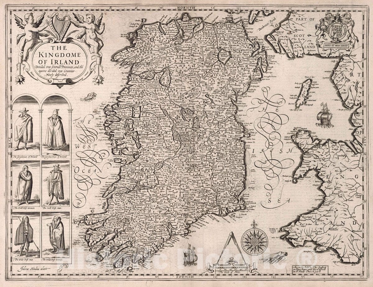 Ireland, The Kingdome of Irland, 1676 Atlas , Vintage Wall Art