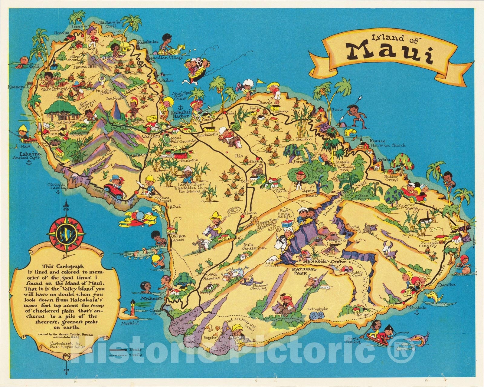 Historic Map : Island of Maui, 1931, Ruth Taylor White, v2, Vintage Wall Art