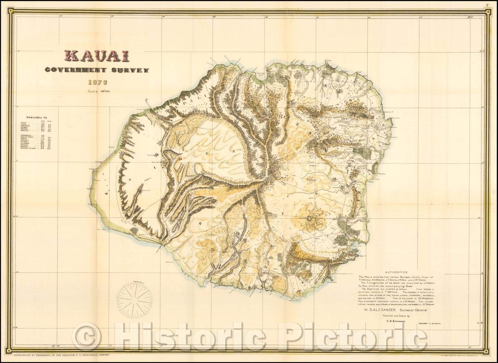 Historic Map - Kauai Government Survey, 1878, Hawaiian Government Survey - Vintage Wall Art