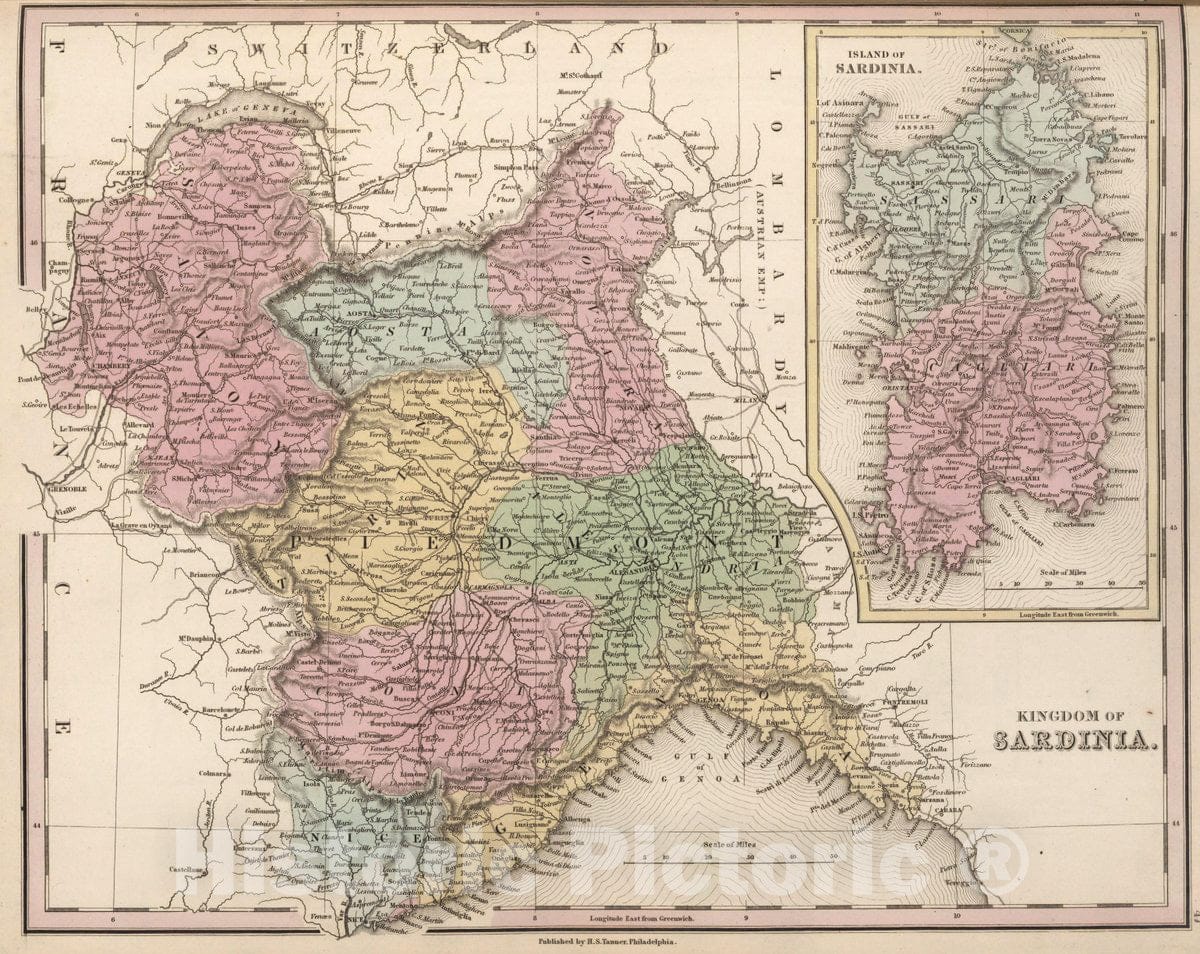 Historic Map : Kingdom of Sardinia, 1836 Atlas - Vintage Wall Art