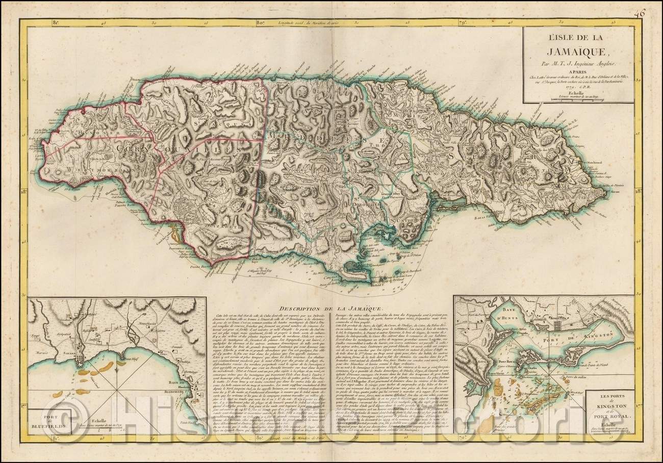 L'Isle de la Jamaique. par M. T. J. Ingenieur Anglois a Paris, 1779 :: French of Jamaica, published by Jean Lattre in Paris, 1779, Jean Lattre