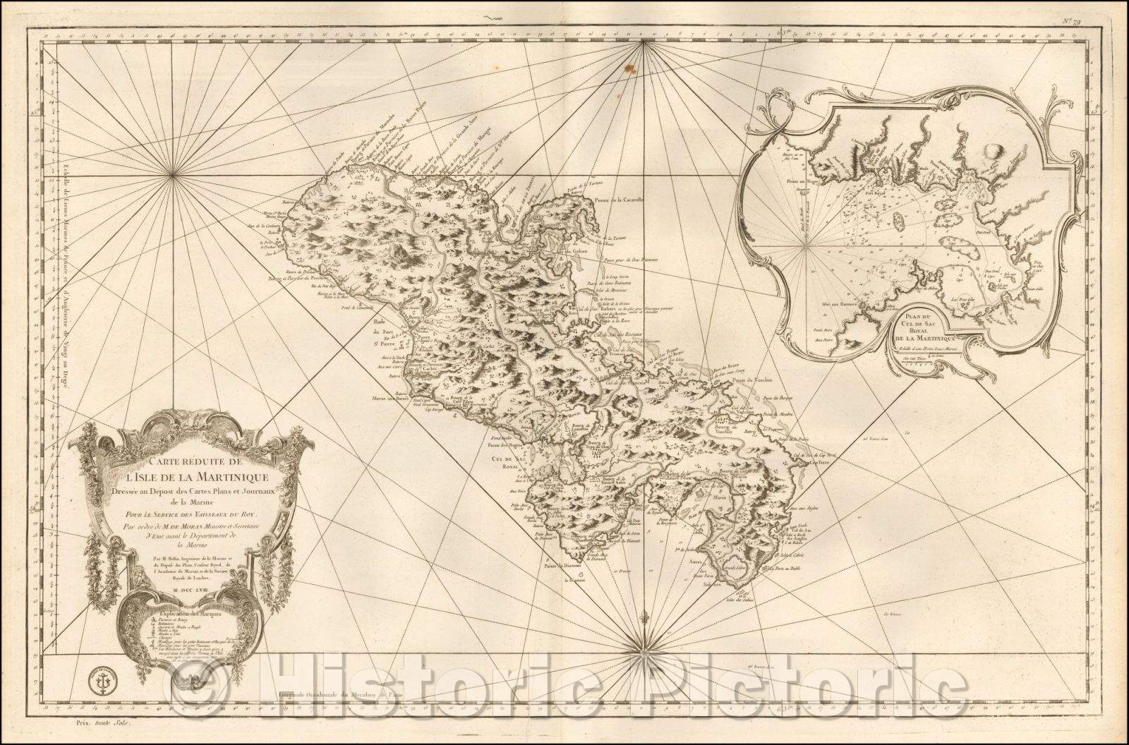 • .Historic Map - L'Isle De La Martinique Dressee au Depost des Cartes Plans et Journaux :: Sea Chart of the Region centered on Martinique, 1758 - Vintage Wall Art