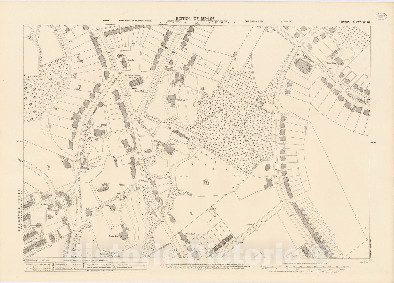London Sheet XV.46 | Ordnance Survey Maps, London, Five feet to the Mile. | The Pub Date of 1896 is latest date of the publication dates of the London, Five feet to the Mile maps, 1893 to 1896. The Date field date is the actual publication date of each sheet.