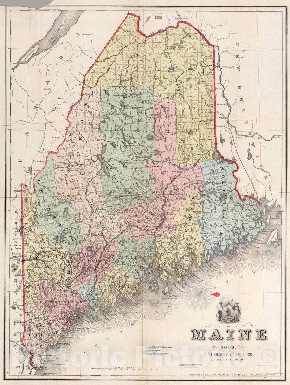 Historic Map : Maine, 1859, Vintage Wall Art