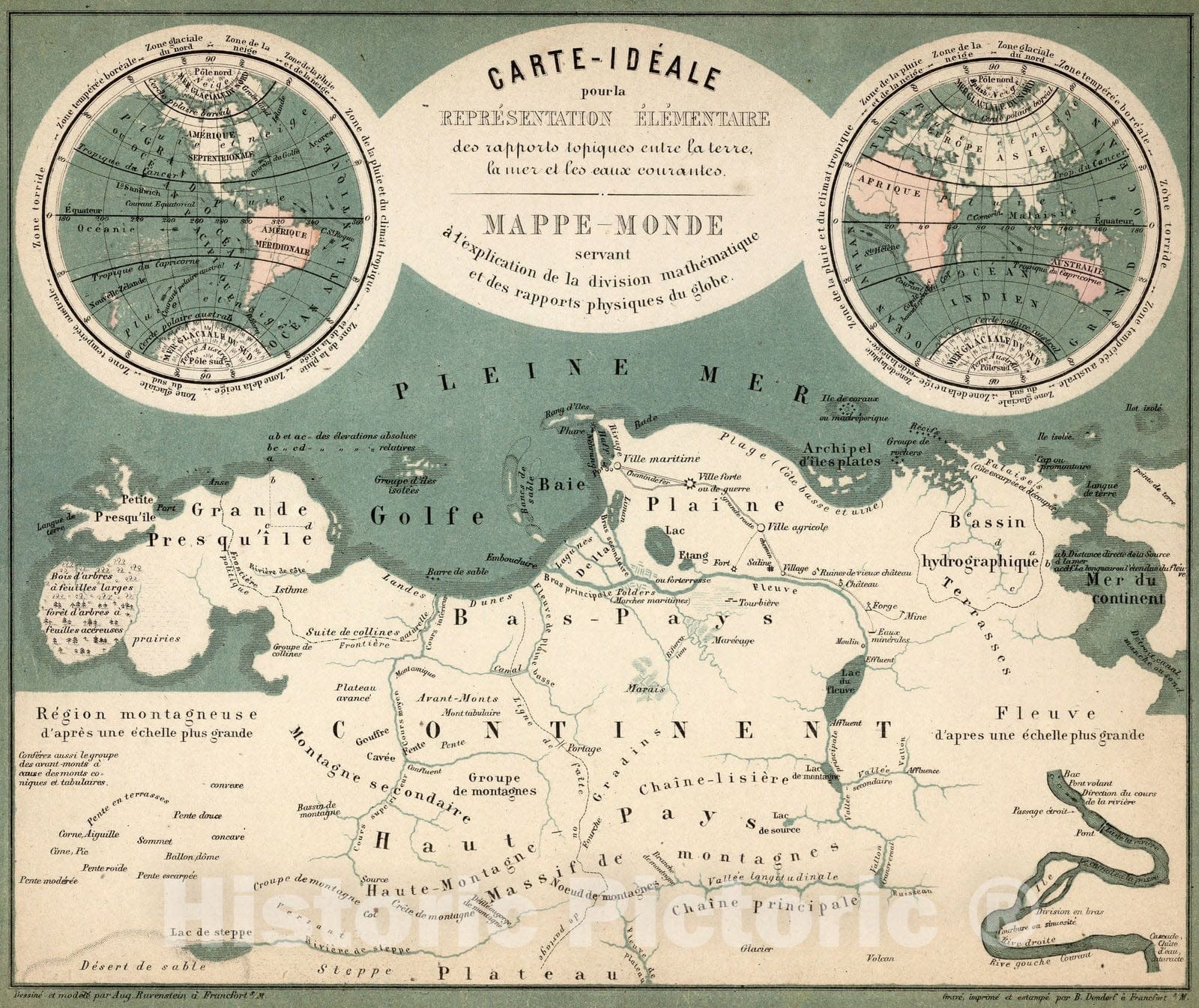 Historic Map : Mappe - Monde, 1865 - Vintage Wall Art