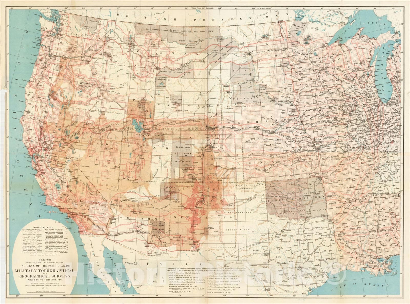 Historic Map : Military Topographical and Geograhical Surveys West of the Mississipp, 1879, Vintage Wall Art