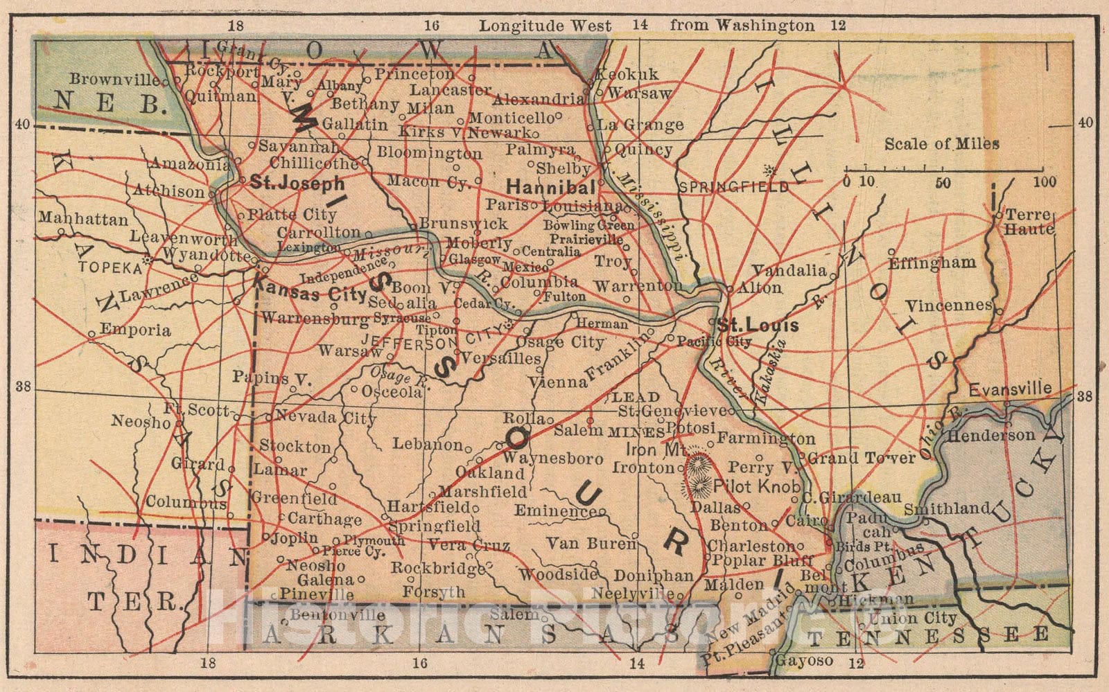 Historic Map : Missouri, 1885, Vintage Wall Art