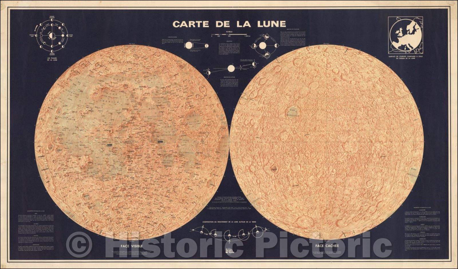 Historic Map - (Moon) Carte de la Lune :: French of the Moon,first manned lunar landings by Appolo 11 and Appolo 12,number of models of Lunar phenomenon, 1970 - Vintage Wall Art