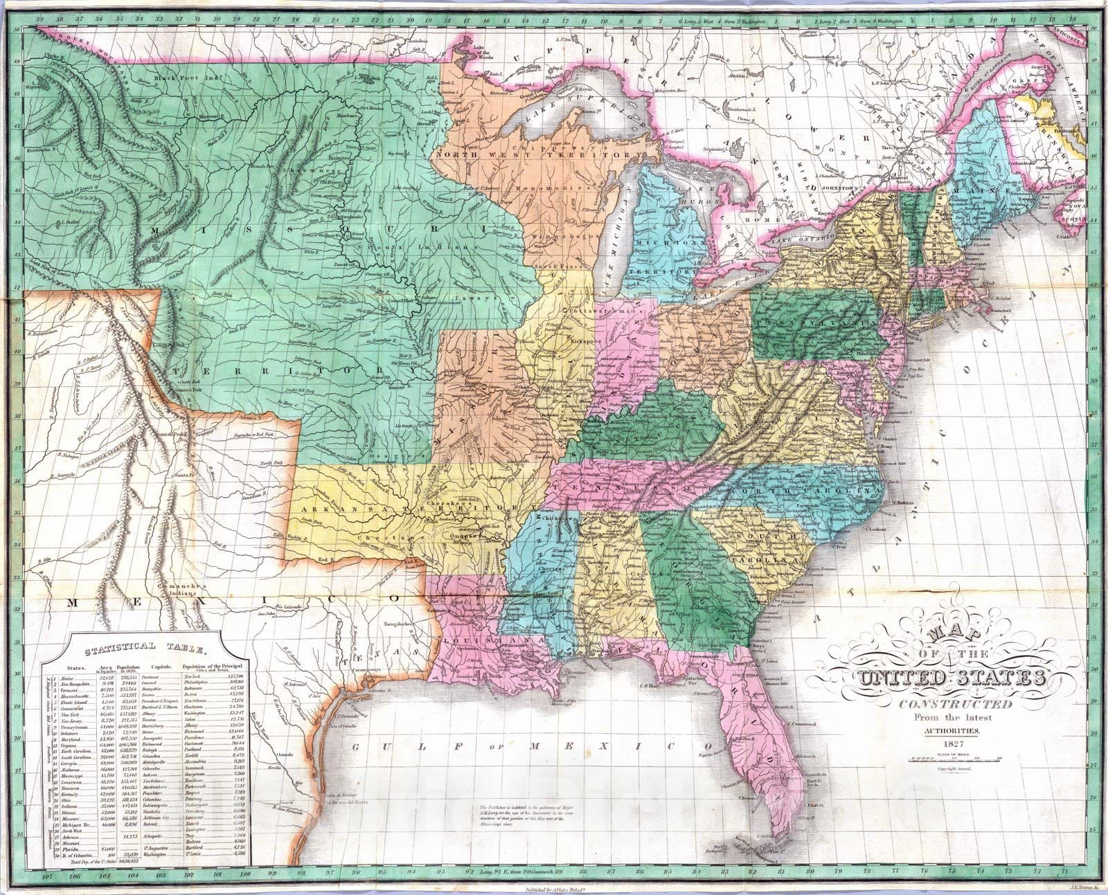 Historic Map : National Atlas - 1827 United States. - Vintage Wall Art