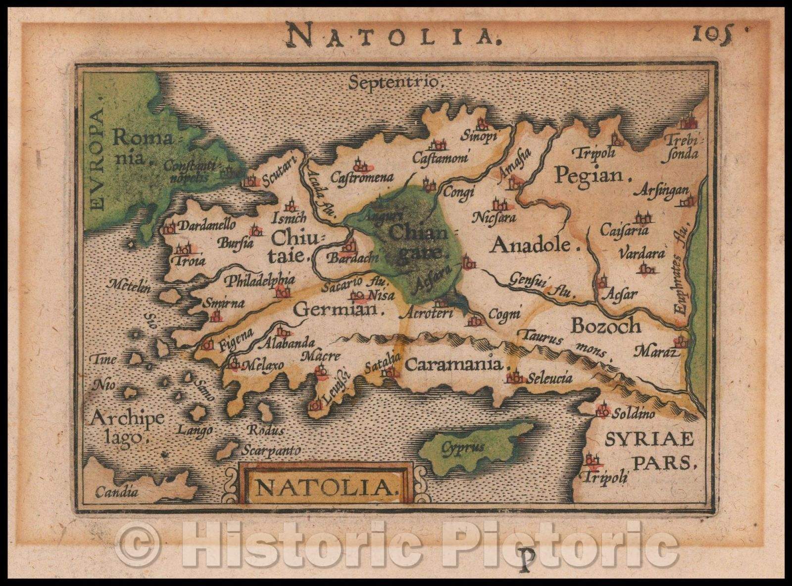 Historic Map - Natolia (with Cyprus), 1598, Petrus Bertius - Vintage Wall Art