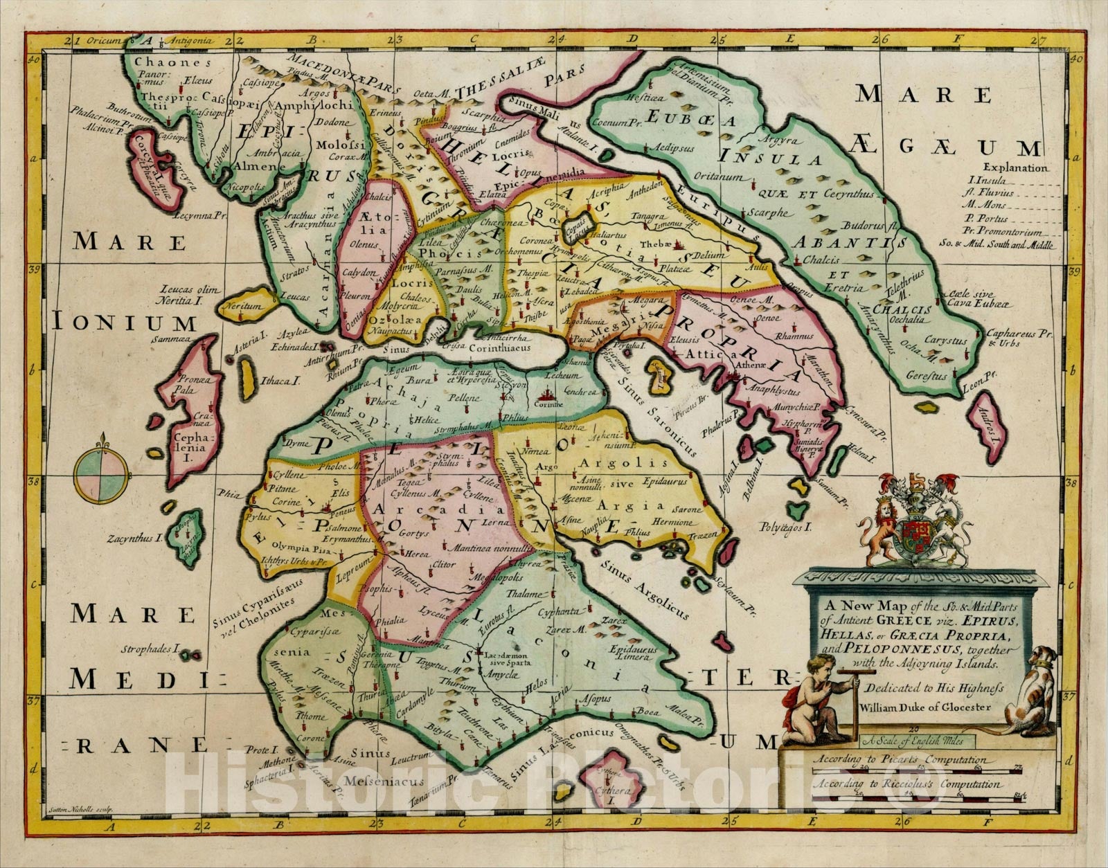 Historic Map : A New Map of the So. & Mid Parts of Antient Greece viz. Epirus, Hellas, or Graecia Propria, and Peloponnesus, 1700, Vintage Wall Art