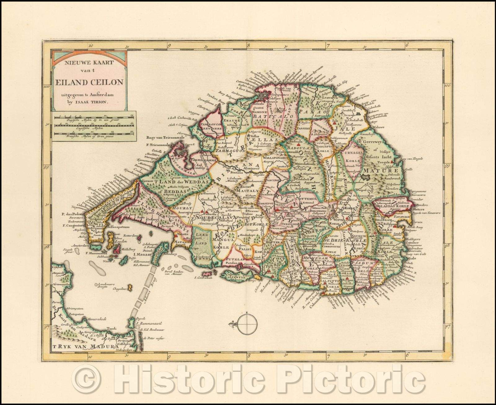 Historic Map - Nieuwe Kaart van t Eiland Ceilon/Issak Tirion's Map of Sri Lanka. and Map for the period, 1750, Issac Tirion - Vintage Wall Art