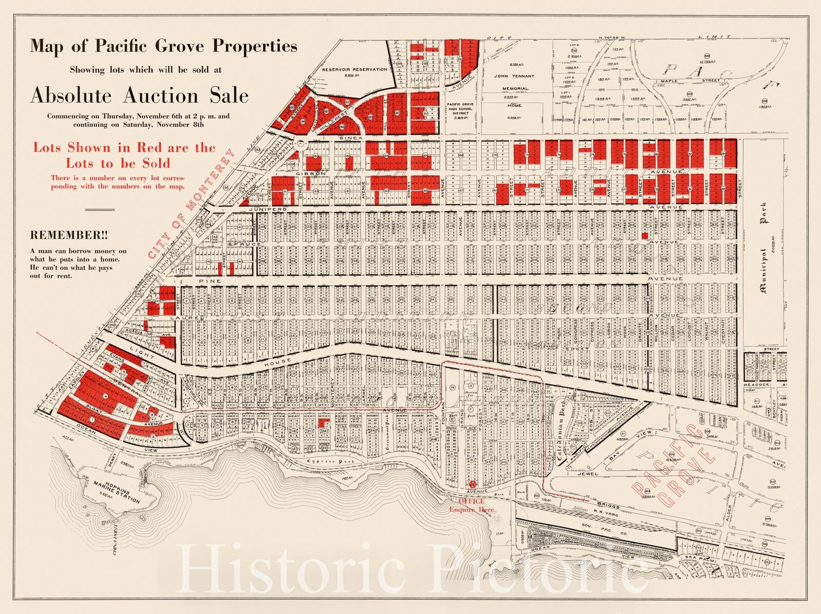 Historic Map : Map of Pacific Grove Properties, 1919 - Vintage Wall Art