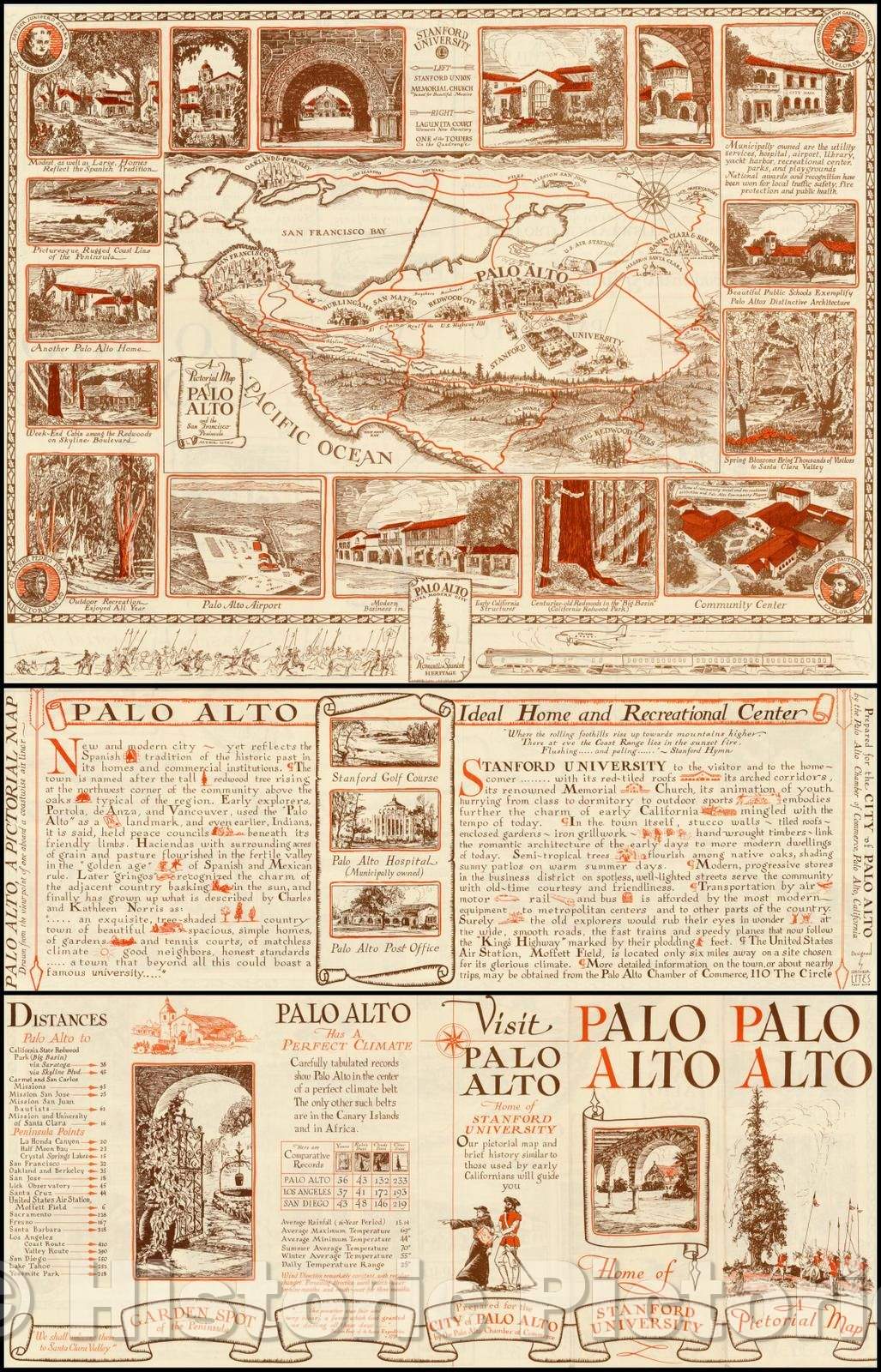Historic Map - A Pictorial Map of Palo Alto and the San Francisco Peninsula, 1939, Arthur Lites - Vintage Wall Art