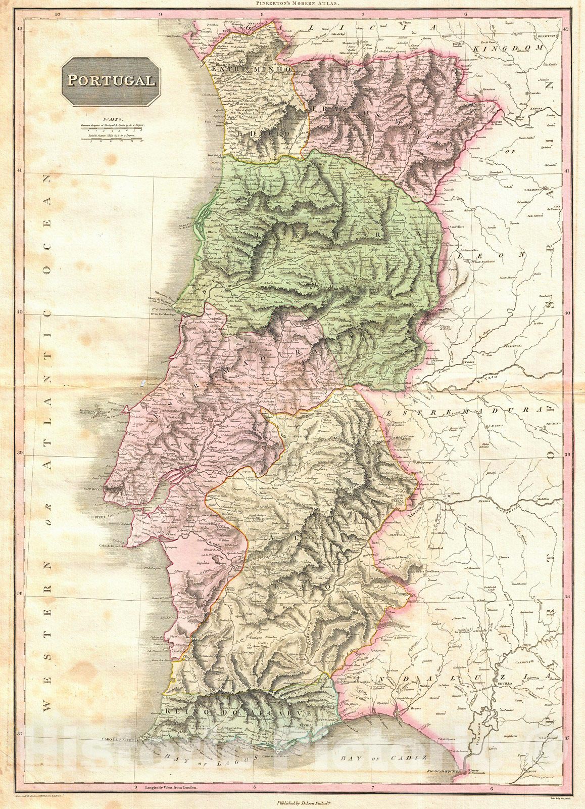Historic Map : Pinkerton Map of Portugal, 1818, Vintage Wall Art