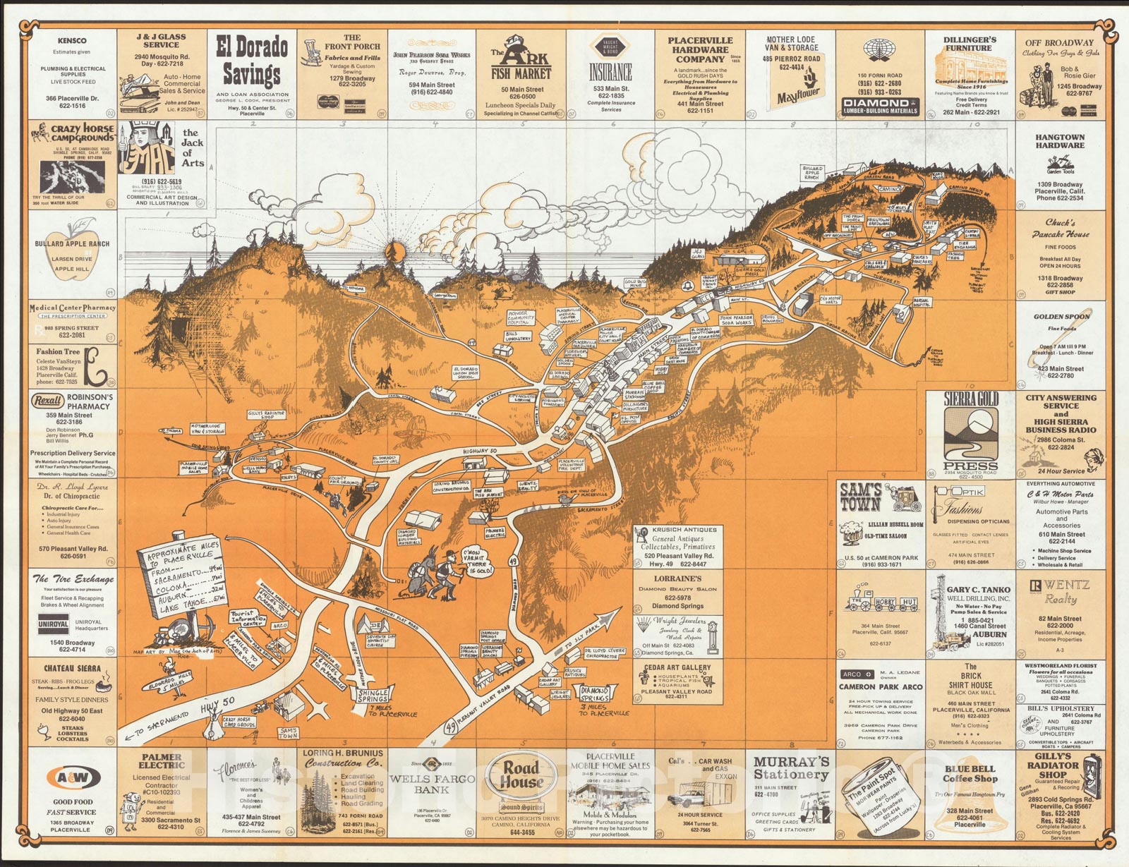 Historic Map : Placerville, California, c1975, , Vintage Wall Art