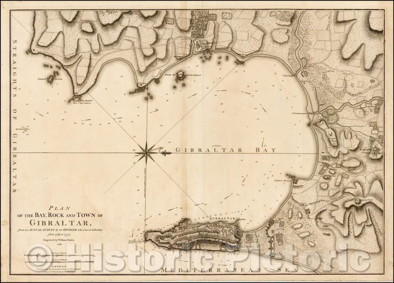 Plan of the Bay, Rock and Town of Gibraltar, from and Actual Survey , 1781, William Faden