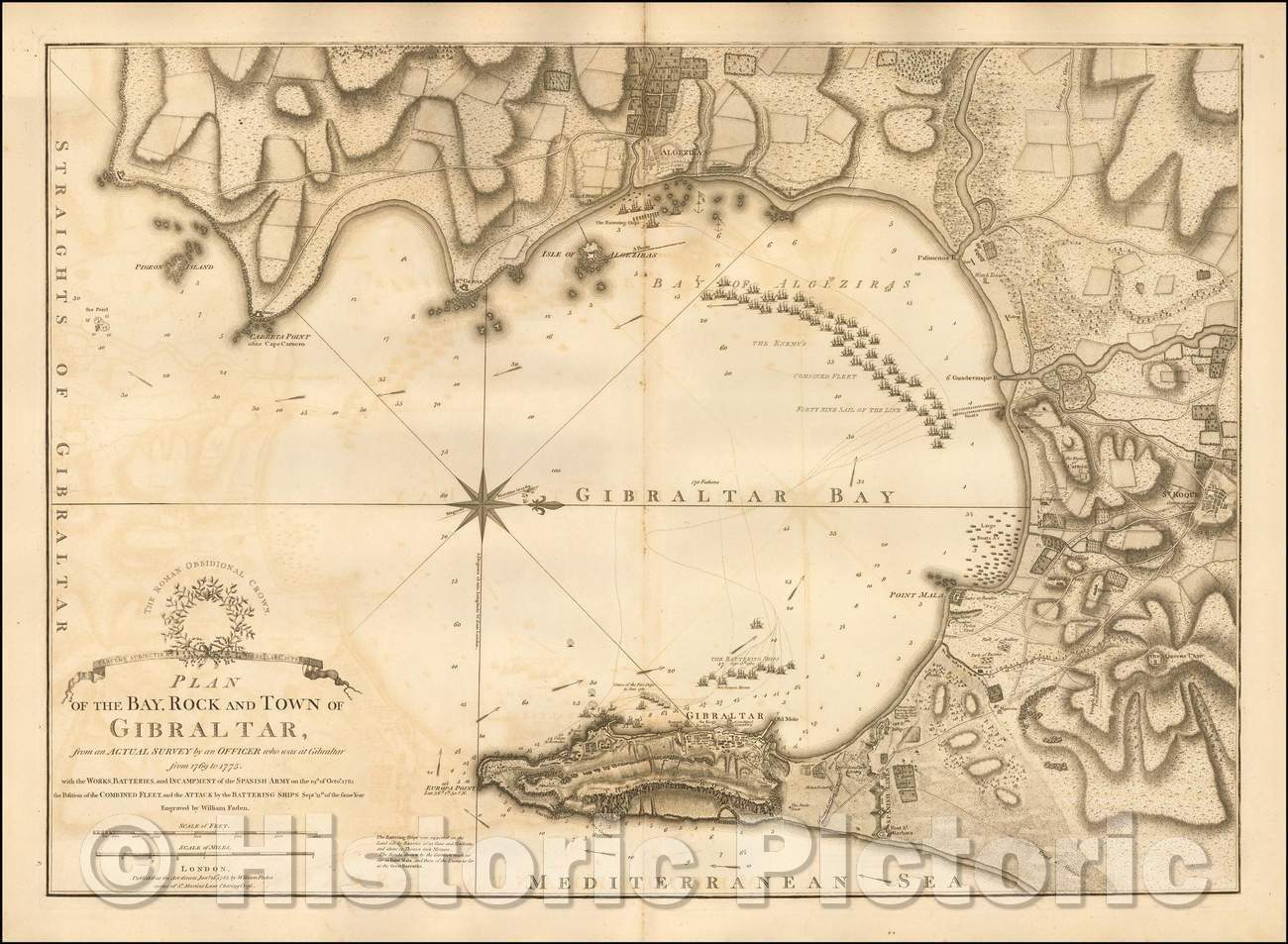 Historic Map - Plan of the Bay, Rock and Town of Gibraltar, from and Actual Survey, 1783, William Faden v3