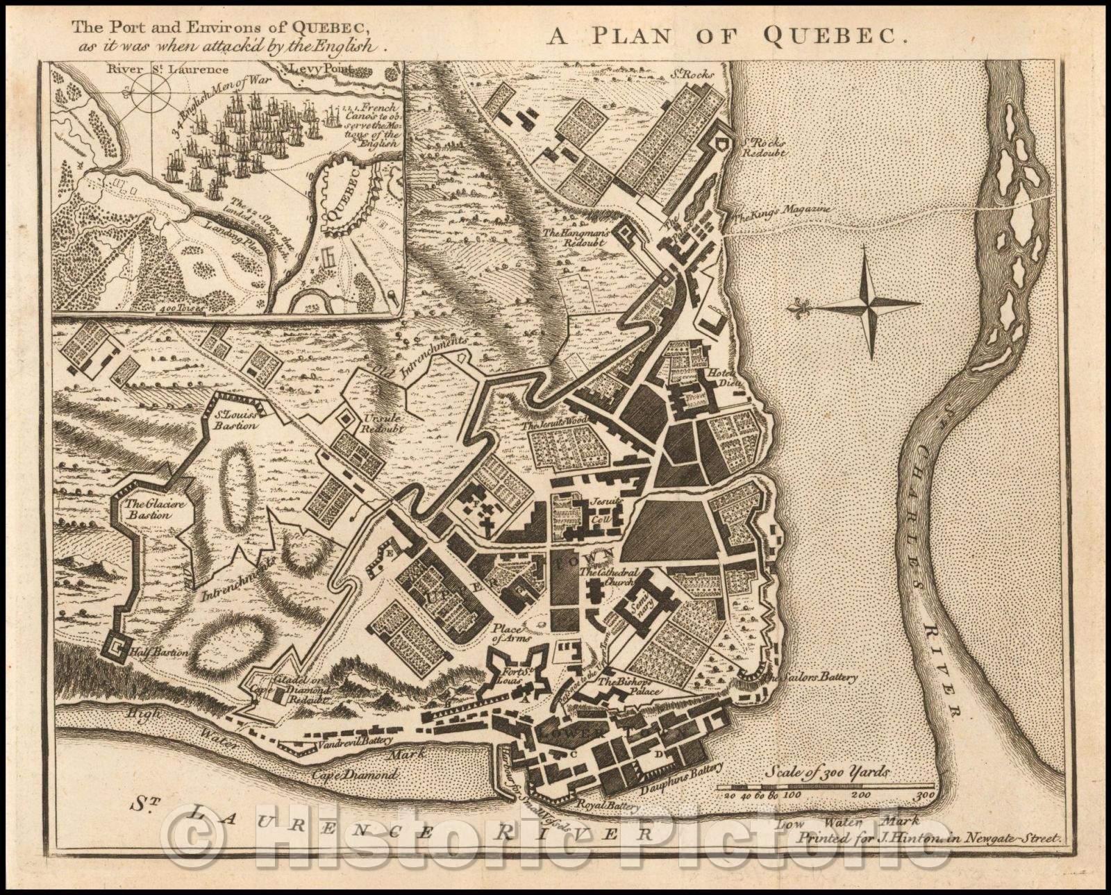 Historic Map - A Plan of Quebec, 1759, Universal Magazine - Vintage Wall Art