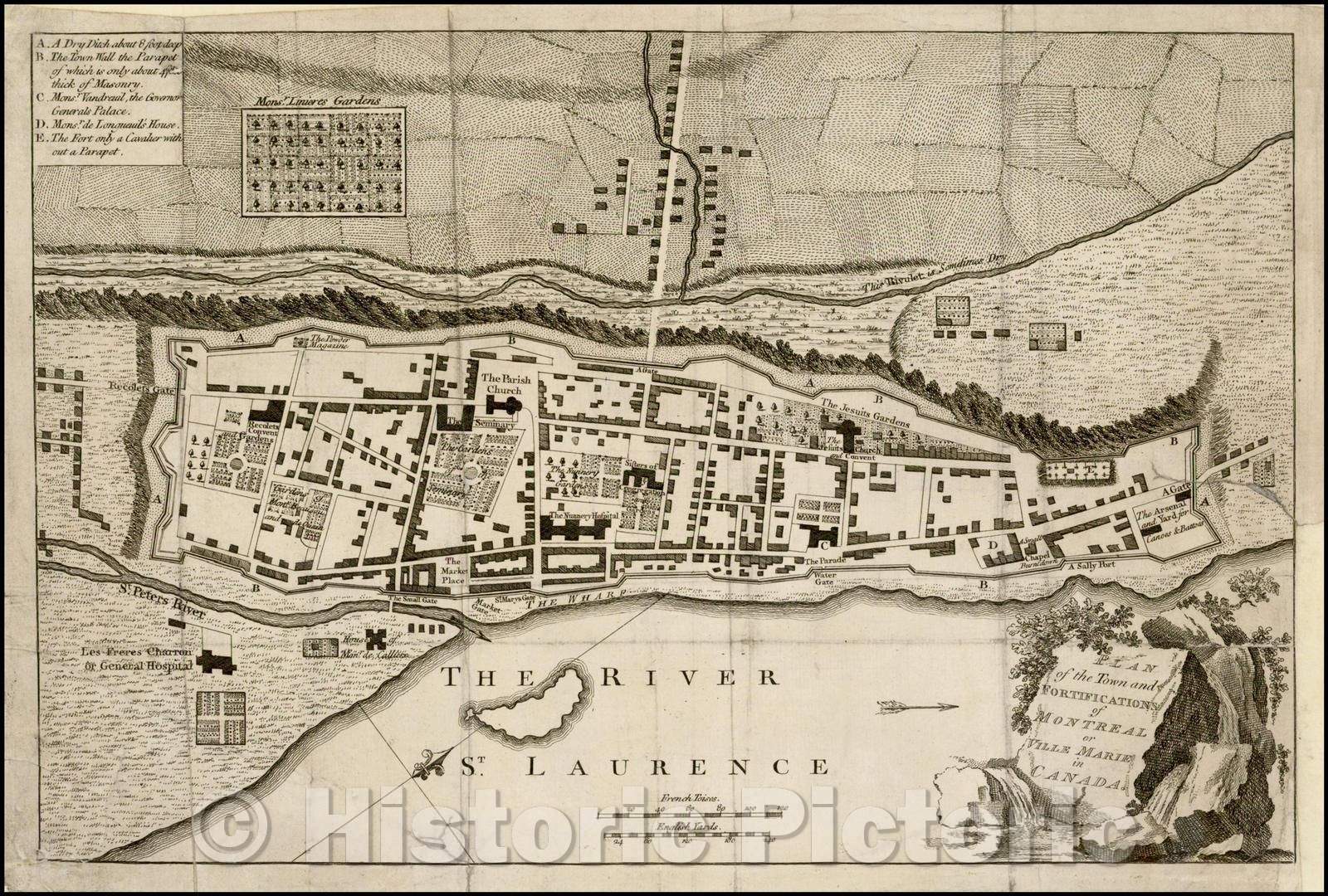 Historic Map - Plan of the Town and Fortifications of Montreal or Ville Marie in Canada, 1759, Universal Magazine - Vintage Wall Art