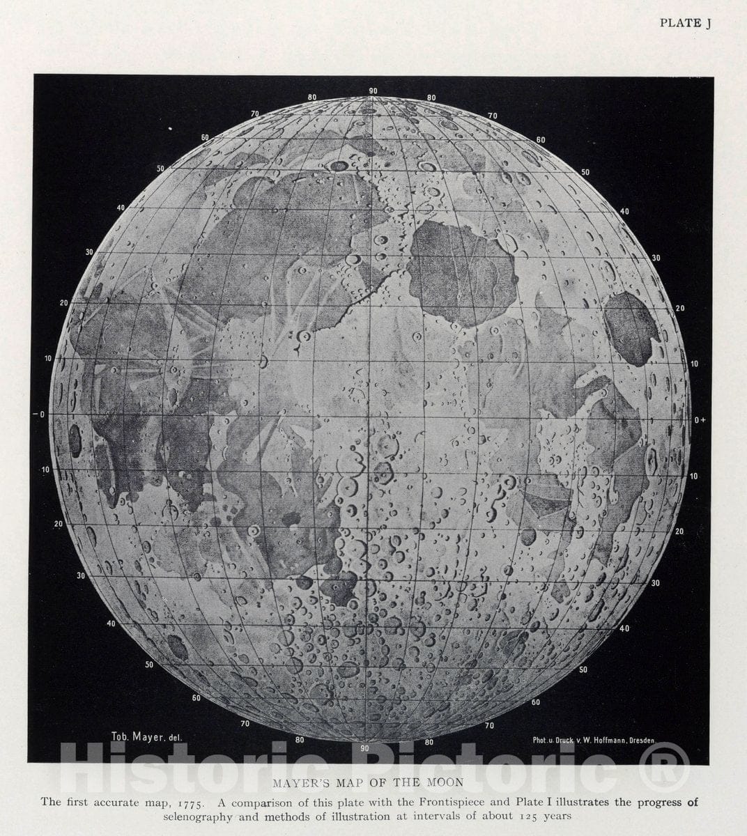 Historic Map : Plate J: Mayer's map of The Moon, 1903 Celestial Atlas - Vintage Wall Art
