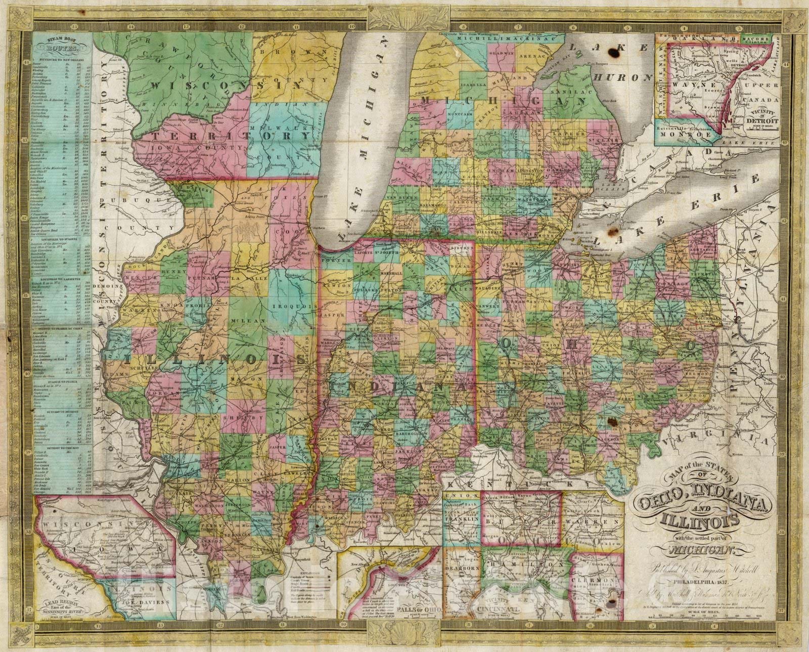 Historic Map : Pocket Map, Ohio, Indiana, Illinois And Michigan 1837 - Vintage Wall Art
