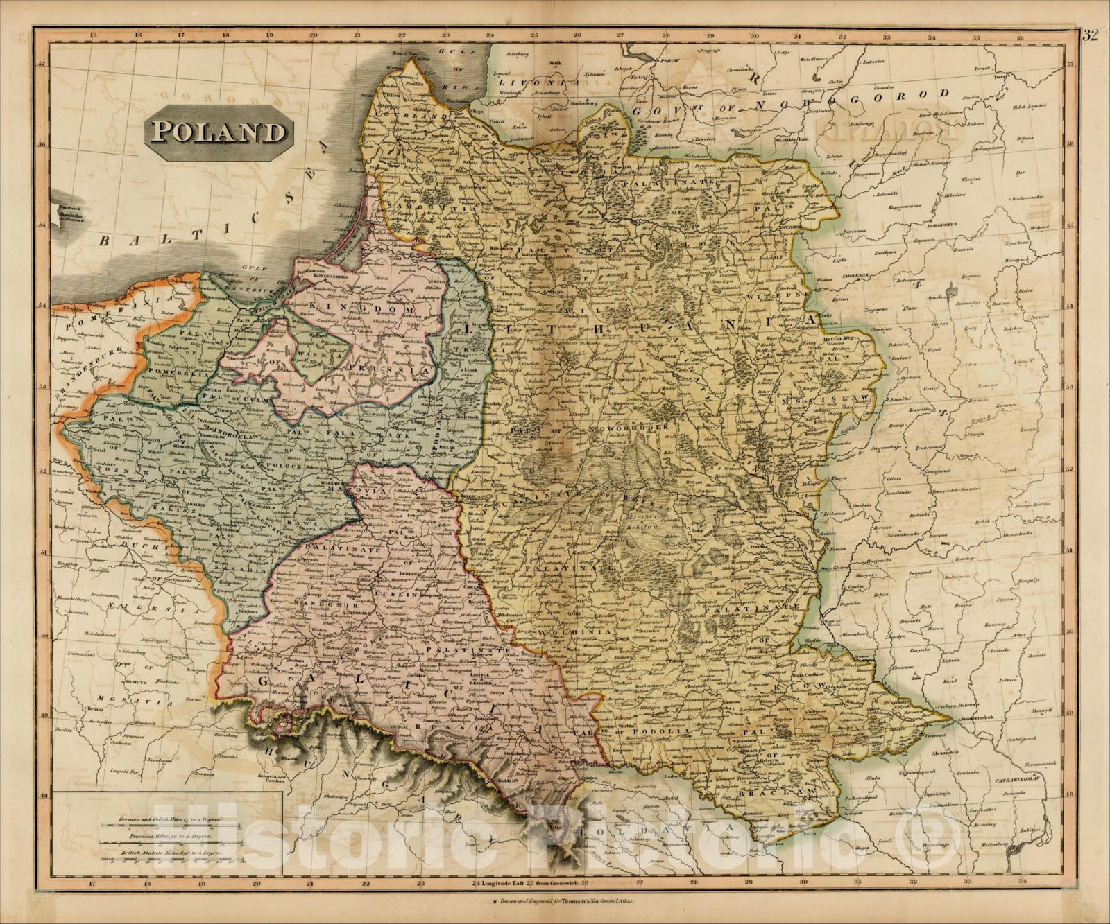 Historic Map : Poland., 1817, John Thomson, Vintage Wall Art