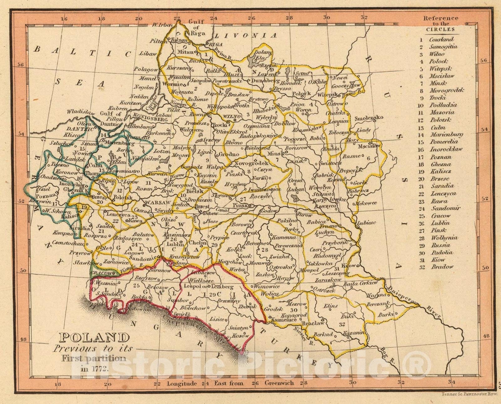 Historic Map : Poland, previous to 1772., 1835, Vintage Wall Art