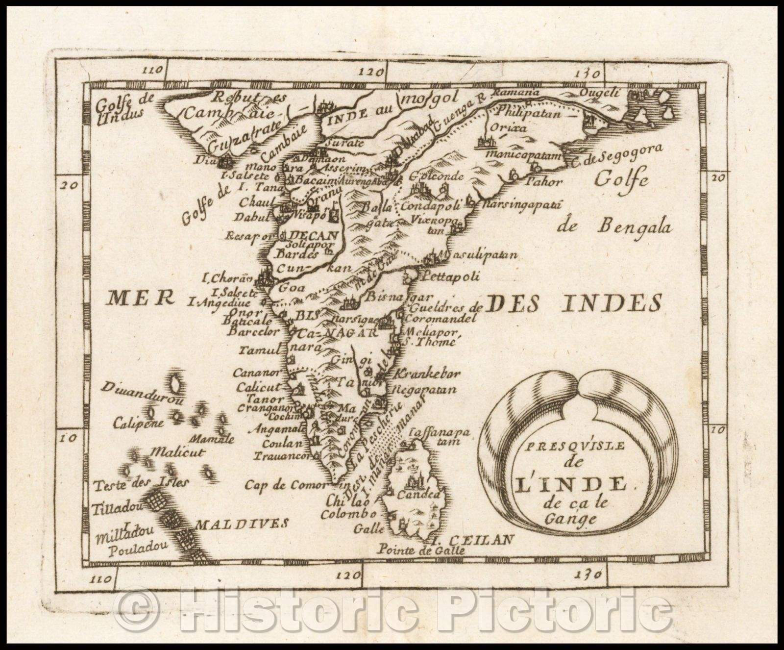Historic Map - Presqui'Isle de L'Inde de ca le Gange/Map of the southern part of India and Sri Lanka, 1676, Pierre Du Val - Vintage Wall Art
