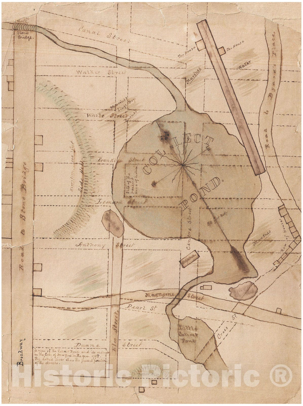 This is a one of a kind early 19th century manuscript map of the New York City's Collect Pond or Five Points region. Cover's parts of southern Manhattan between Broadway and Cross Street, including Leonard Street, Anthony Street, Elm Street, Pearl Stre