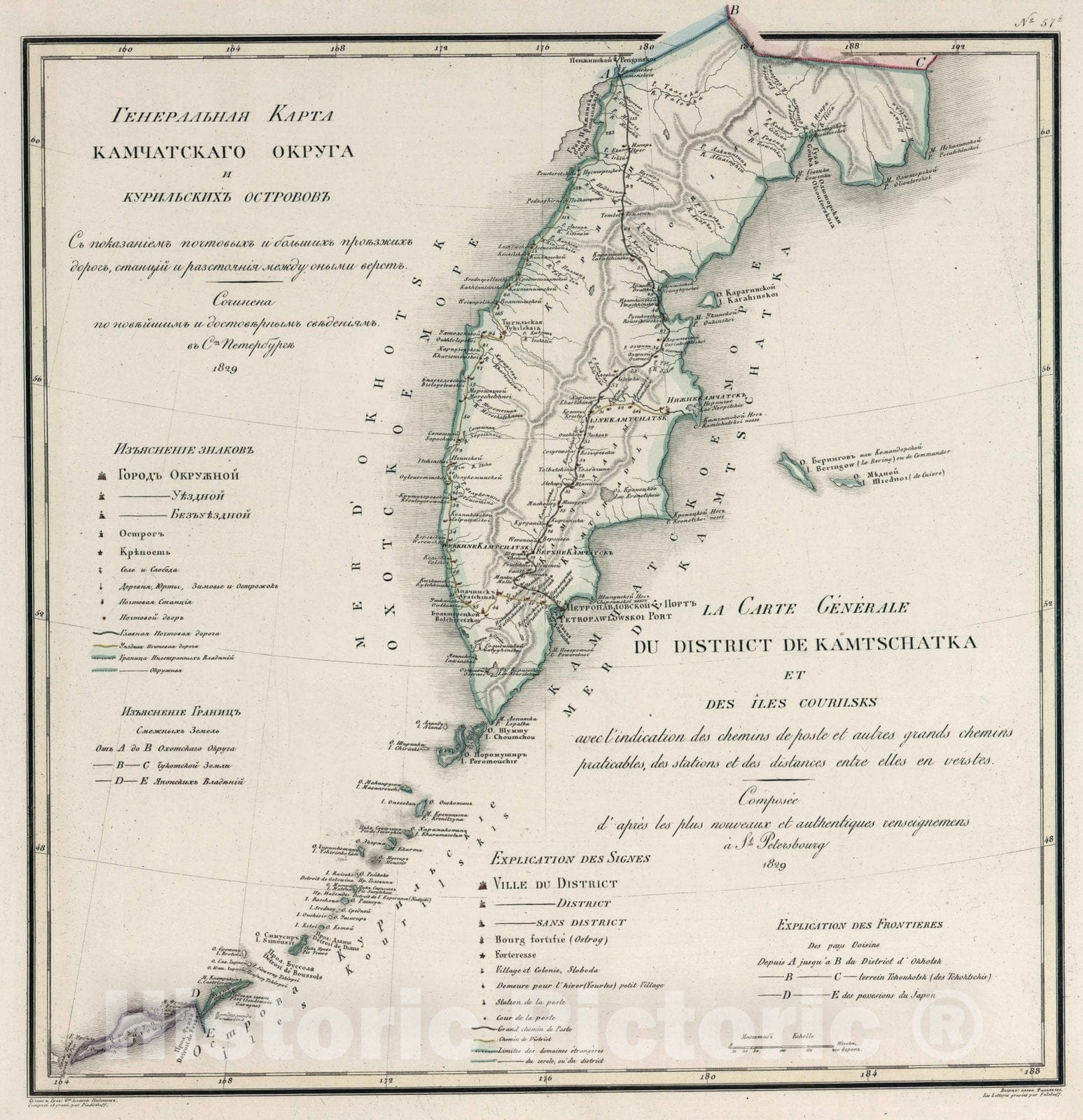 Historic Map : Russia, Kamchatka Peninsula (Russia) Regional Atlas Map, Kamchatskogo okruga i Kurilskikh ostrovov = District de Kamtschatka 1829 , Vintage Wall Art